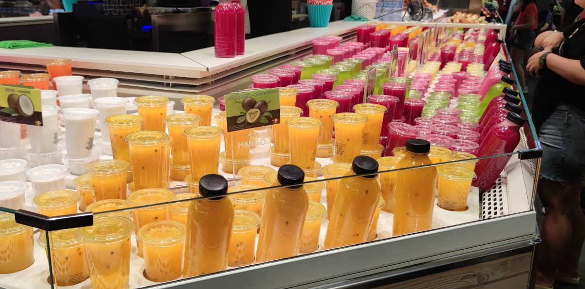 - 하루에 수십 가지 종류의 과일 주스를 맛볼 수 있으며, 가격도 합리적입니다.