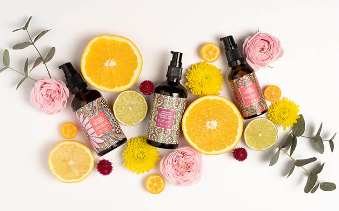 - 라벤더, 유칼립투스, 티트리 등 아유르베다 허브 기반의 아로마 오일.