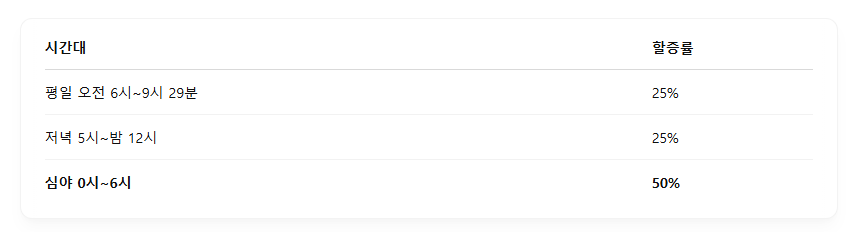 ✔ “대부분의 관광, 식사, 귀가 시간대가 할증 시간”