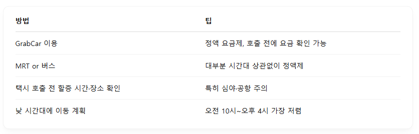 | [싱가포르] 싱가포르 택시요금, 언제 가장 비쌀까? – 피크타임과 할증 총정리 (0) | 2025.04.09 |