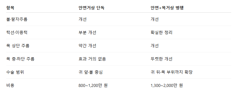 ✅ 안면거상 vs 안면+목거상 효과 비교