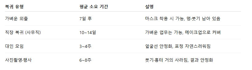 ✅ 안면거상 수술 후 복귀까지 평균 소요 기간