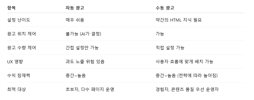이번 글에서는 자동 광고와 수동 광고의 차이점과 수익에 미치는 영향을 집중적으로 분석합니다.