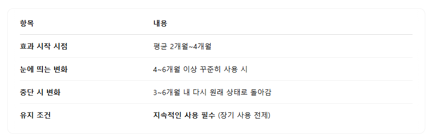 📌 효과는 서서히 나타나며, 단기간에 결과를 기대하면 실망할 수 있습니다.