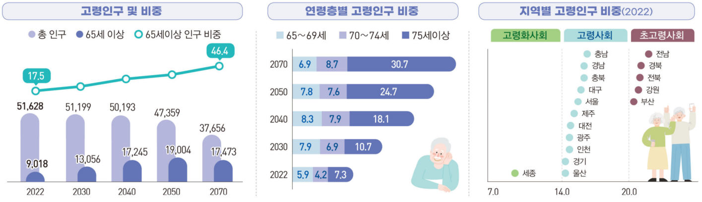 2022년 65세 이상 고령인구는 전체 인구의 17.5%, 2025년 초고령사회에 진입