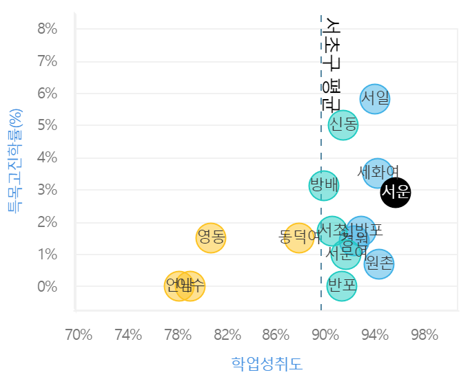 - 서초구 학군 전체에서 서운중이 학업성취도 top1