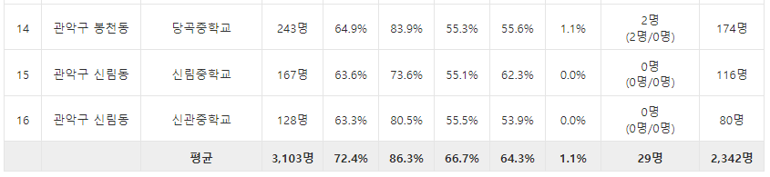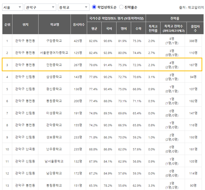 - 학업성취도는 관악구 top3, 특목고 진학율은 관악구 top4
