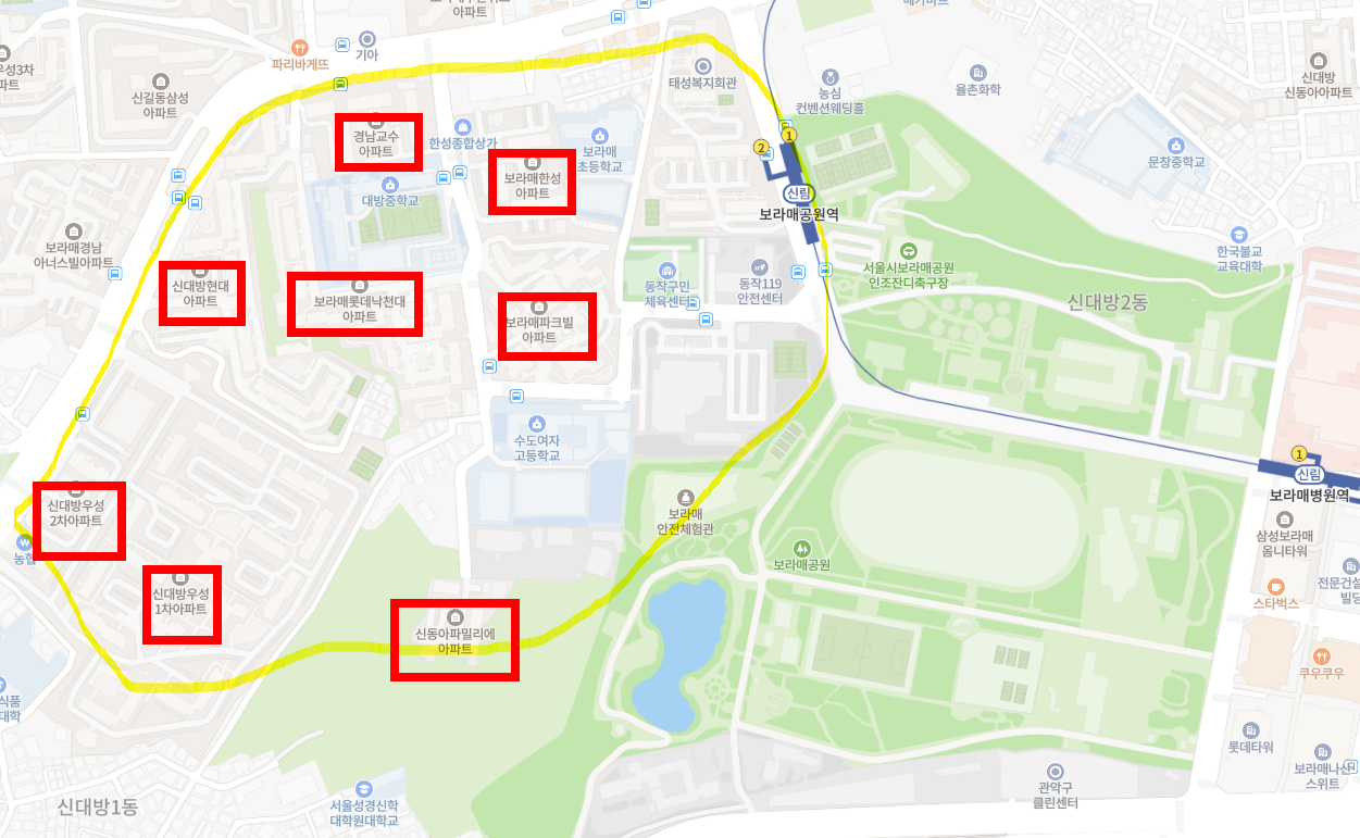 ○ 주소상 신대방1동에 해당