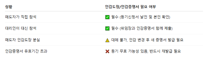 - 인감증명서로 ‘이 인감도장이 실제 매도인의 것’임을 증명해야 함