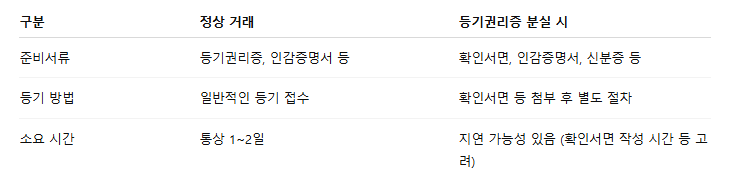 중요: 등기권리증 분실 사실을 잔금일 당일에야 알게 되면 거래가 지연될 수 있습니다.