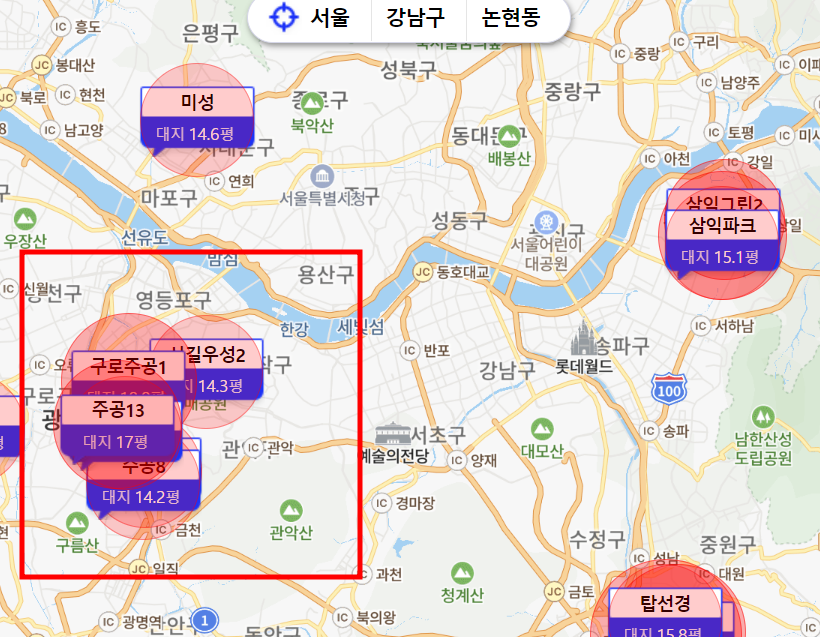 | 구로주공1 | 18.1 | 153 | 27평 7.3억 | 39 | 1400 |