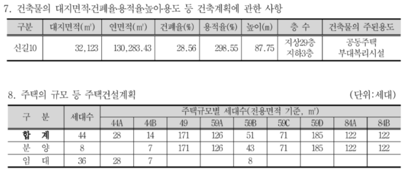 - 건설 계획 : 지하 3층 - 지상 29층, 8개 동