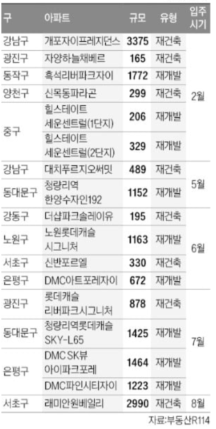[서울] 올해 입주 예정인 재건축/재개발 아파트