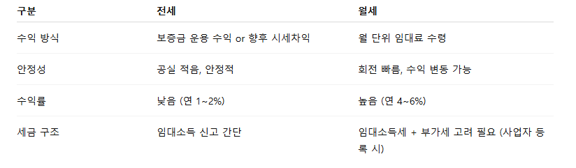 🧾 전세 vs 월세 수익 구조 간단 정리