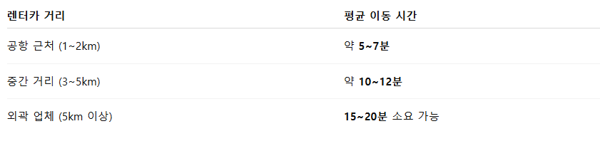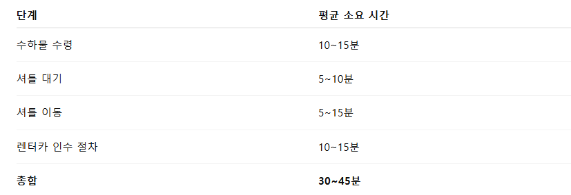 🕒 공항 도착 후 렌터카 수령까지 걸리는 총 시간