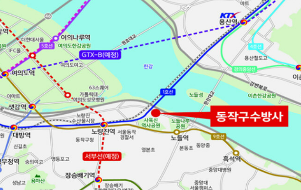 - 지하철 1·9호선이 다니는 노량진역과 9호선 노들역 중간