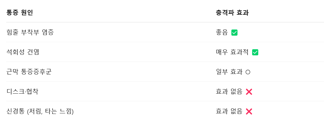 ⚠️ 저림, 방사통 위주라면 충격파보다 다른 치료(신경차단술 등)가 적절