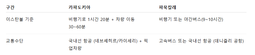 👉 교통 편의성: 파묵칼레 > 카파도키아