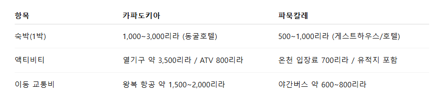 👉 예산 여유가 있다면 카파도키아, 가성비를 원하면 파묵칼레