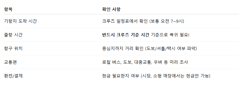 이번 글에서는 크루즈 기항지에서 자유여행을 안전하고 알차게 즐기는 꿀팁을 정리해드립니다.