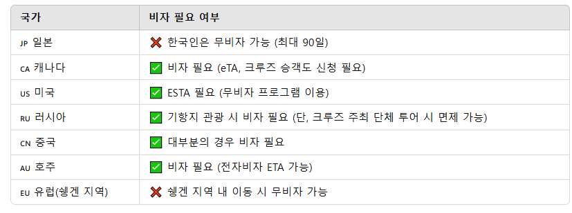 📌 2. 크루즈 여행 시 비자 필요 여부