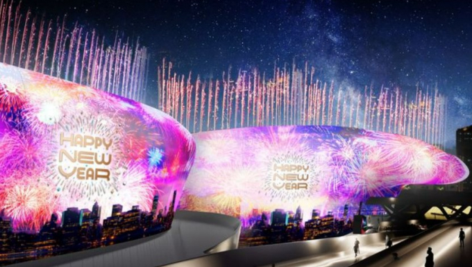- 타워 외벽 라이트쇼 + 호수 주변 산책로의 크리스마스 데코