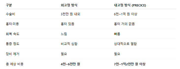 - 내고정 방식(PRECICE): 약 5,000만~8,000만 원