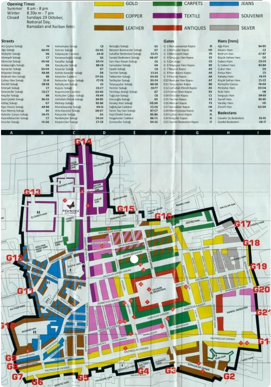 ○ 금, 은, 카펫, 기념품, 가죽제품, 공예품 등 품목이 특정 위치에 몰려 있으므로 반드시 지도를 확인하고 찾아가야지 헤매지 않음