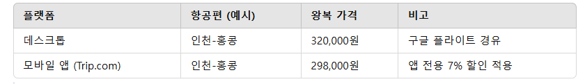 - 저가항공 (LCC): 모바일 앱에서 더 저렴한 경우가 많음