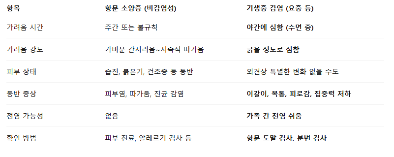 🧾 항문 소양증 vs. 기생충 감염 비교표