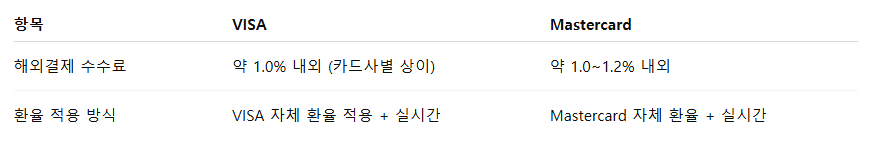 📌 체감상 VISA가 환율이 조금 더 유리한 경우 많음