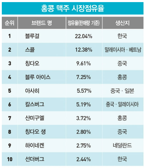 - 홍콩 맥주 판매/점유율 1위가 '블루걸' 이라고 하니 꼭 맛보길 추천함
