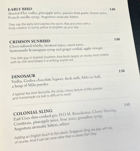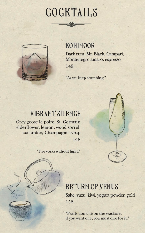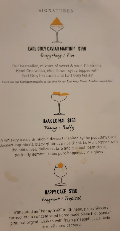 ○ 칵테일 메뉴 대부분이 150 달러 미만 가격