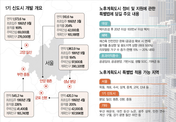 1기 신도시(분당, 일산, 평촌, 산본, 중동)의 재건축·재개발을 촉진하기 위한 특별법으로, 기반시설 확충과 용적률 상향을 지원하여 신속한 정비사업을 추진하는 것이 목적입니다.