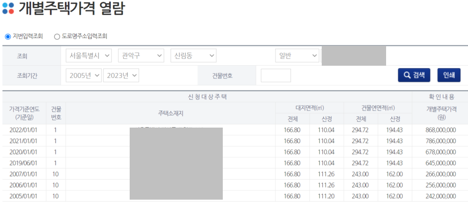 - 대지지분을 포함한 주택의 공시가격 열람 가능
