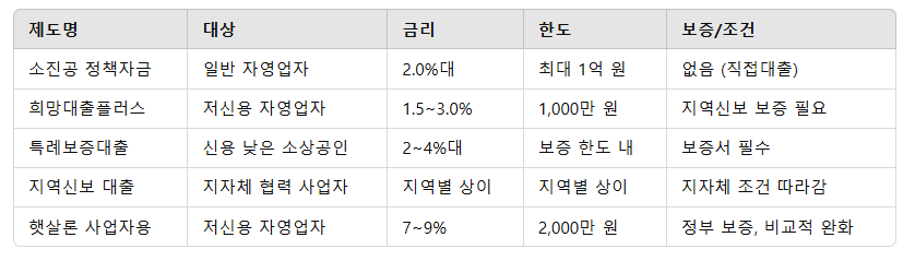 ✅ 1. 소상공인 정책자금 대출 (소진공)