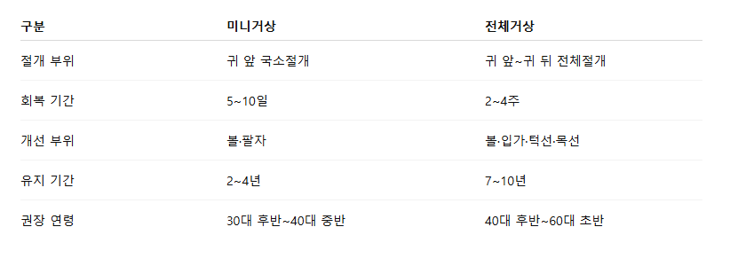 전체거상 vs 미니거상 비교 – 어떤 안면거상이 나에게 맞을까?