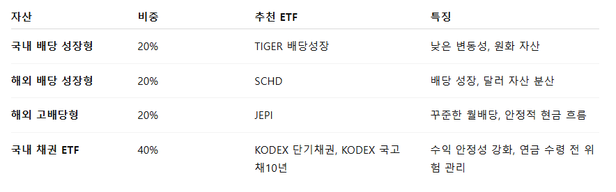 ✅ ② 안정형 포트폴리오 (연금 개시 5년 이내 투자자)
