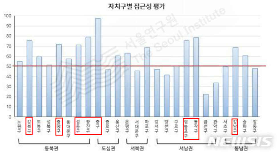- 대중교통 접근성 상위 자치구 : 중구(97.7%), 광진구(79.1%), 동작구(78.8%)