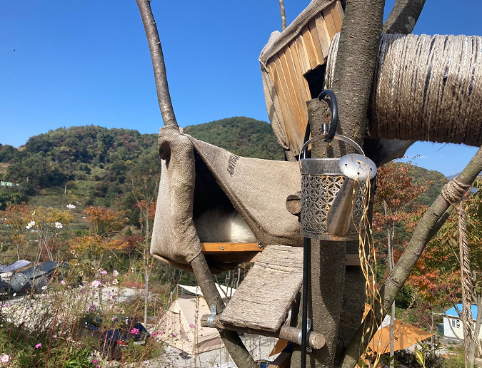 이곳에는 3마리 고양이가 산다. 다들 개냥이라 사람 잘 따르고 순하고 이쁘기까지 하다. 조용하고 평화로운 캠핑장에서 고양이랑 놀작놀작하는 즐거움도 컸다. 단골로 오시는 분들은 전문 집사님들처럼 놀아주셨다. 그중 한 마리가 임신했는데 캠퍼 중 한 분께서 데려가기로 하셨단다.